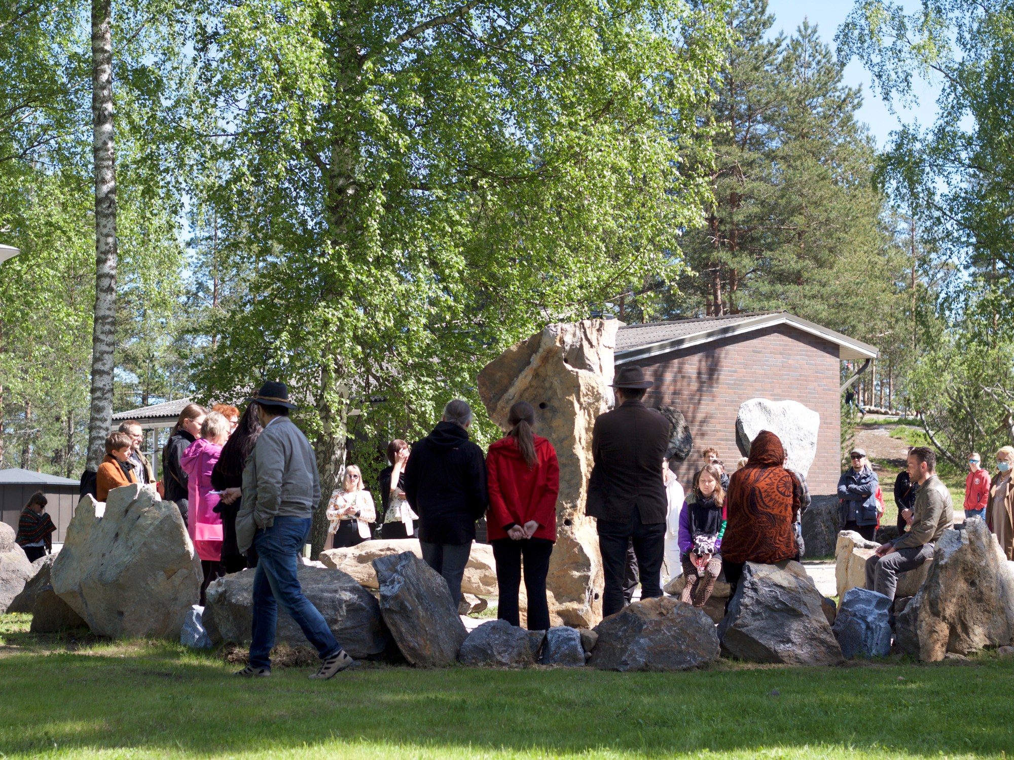 OlI have approached the theme of the Retretti exhibition (ancient Finnishness) through ritual and mutual belonging. The stone circle has eight stone-shaped speakers, each with its own singer’s voice. The group song forms an ancient ritual through which the visitor can align oneself into the singing and empowerment of the tribe. The installation features two different musical works. The first every hour and the second always from 10 a.m. to 6 p.m.