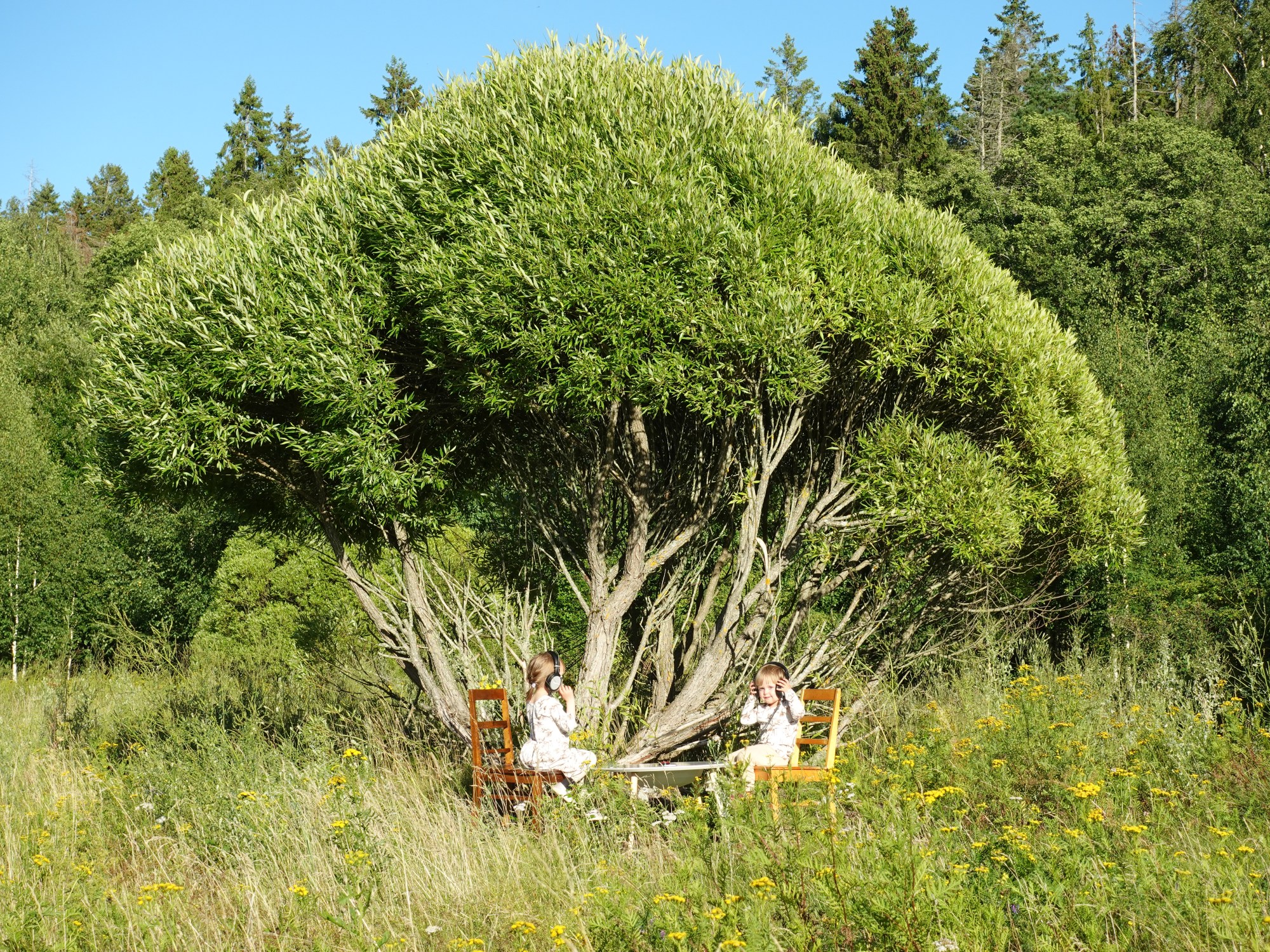 Pöytä kahdelle on musiikintekijä Hilla Väyrysen ja äänitaiteilija Jaakko Aution interaktiivinen ääni-installaatio, joka kutsuu kaksikkoja — rakastavaisia ja ystäviä — tunnustelemaan läsnäoloa ja läheisyyttä välillään. Teoksen voi kokea myös yksin kuvitellen vastakkaiselle sohvalle merkityksellisen toisen. Pöydän äärellä kokijoille aukeaa jokaisella kuuntelukerralla uniikki musiikillinen matka, joka johdattaa heidät kohtaamaan itsensä ja toisensa käsillä olevassa hetkessä. Mahdollisia erilaisia järjestyksiä on yli puoli miljoonaa.