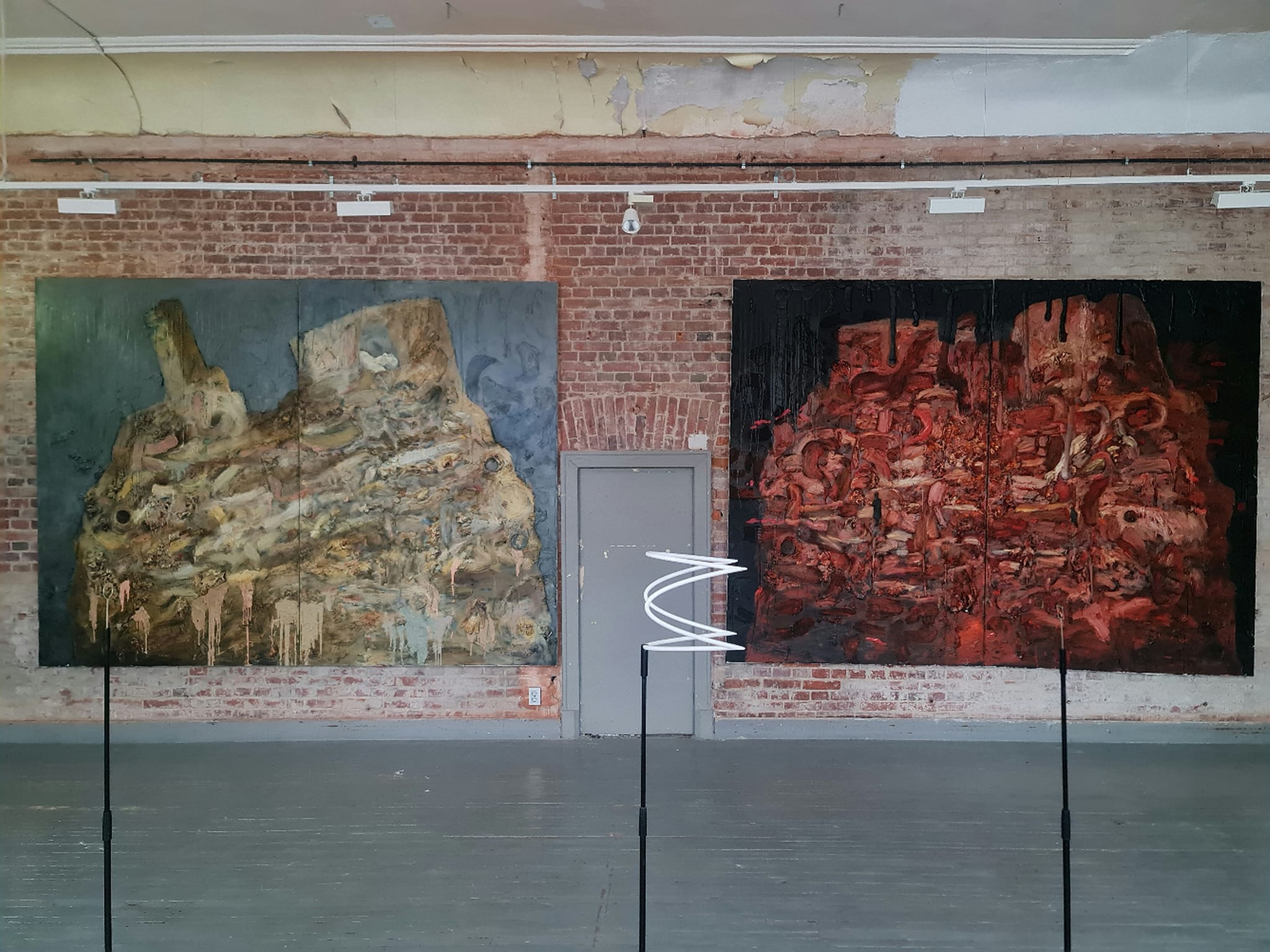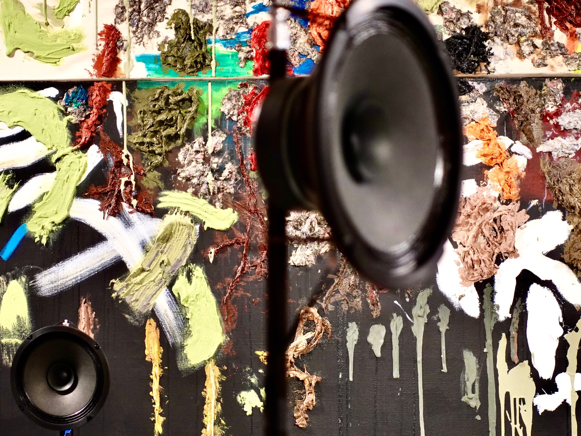 In the exhibition, Vesalahti’s paintings and my sound installations create an interplay between visual turbulence and sonic togetherness. While his canvases reflect the pressure of violent forces and the fragmentation of harmony, the sound works invite the visitor to experience moments of connection, empathy, and collective presence. The central InterSpace sculpture acts as a bridge between our artistic perspectives, encouraging viewers to move between these worlds—between the unresolved questions and tensions of the paintings and the fleeting sense of unity and hope in the sound environment.