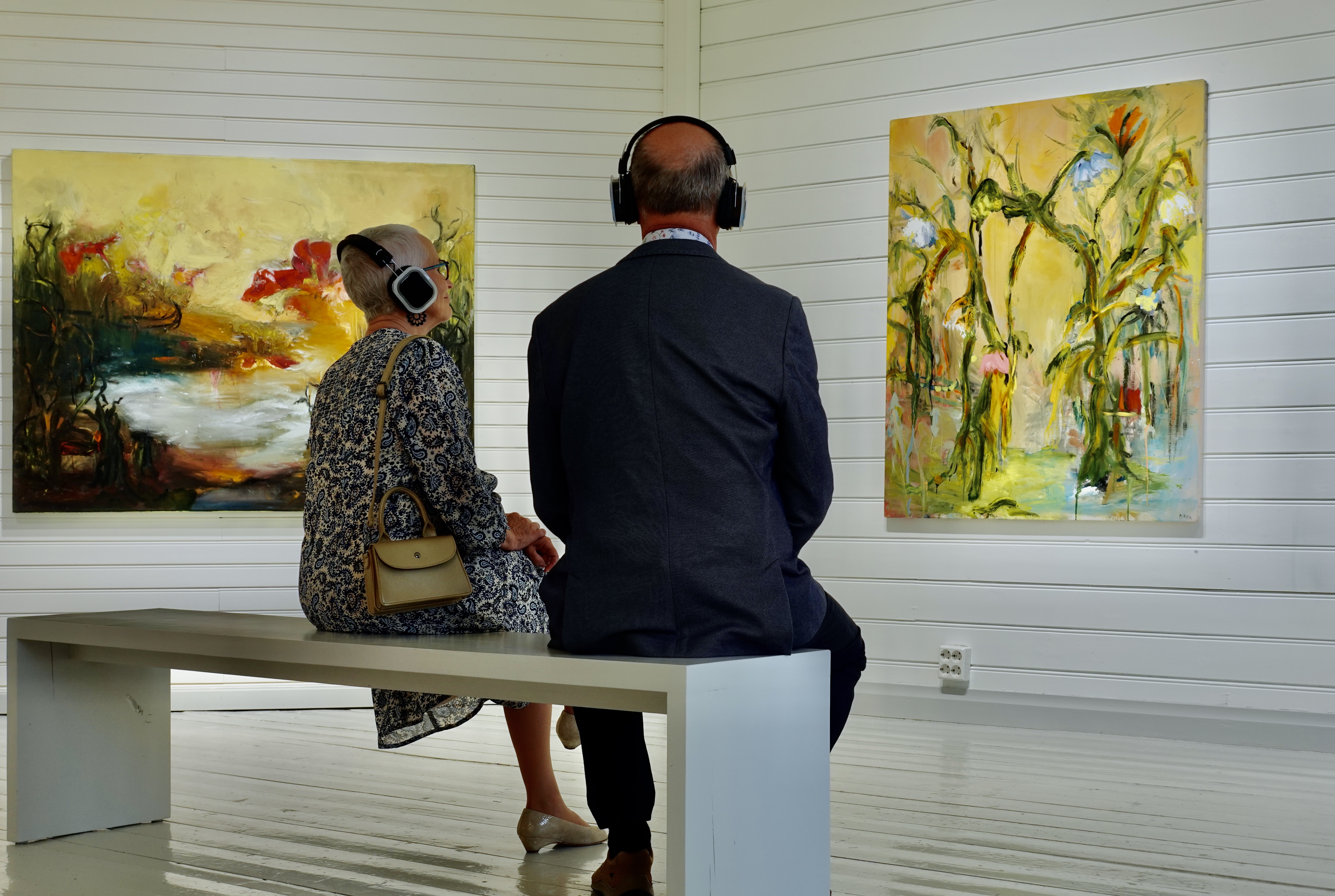 The work unfolds throughout the different spaces of the gallery. The downstairs features flower-themed paintings, abstract lines, and various forms of beauty, while the upstairs presents sculptures and watercolors. The sound piece is realized as a 20-channel installation, recorded with binaural microphones. These microphones are shaped like human ears and allow the soundscape to be delivered to the listener in a natural, spatial way via wireless headphones.