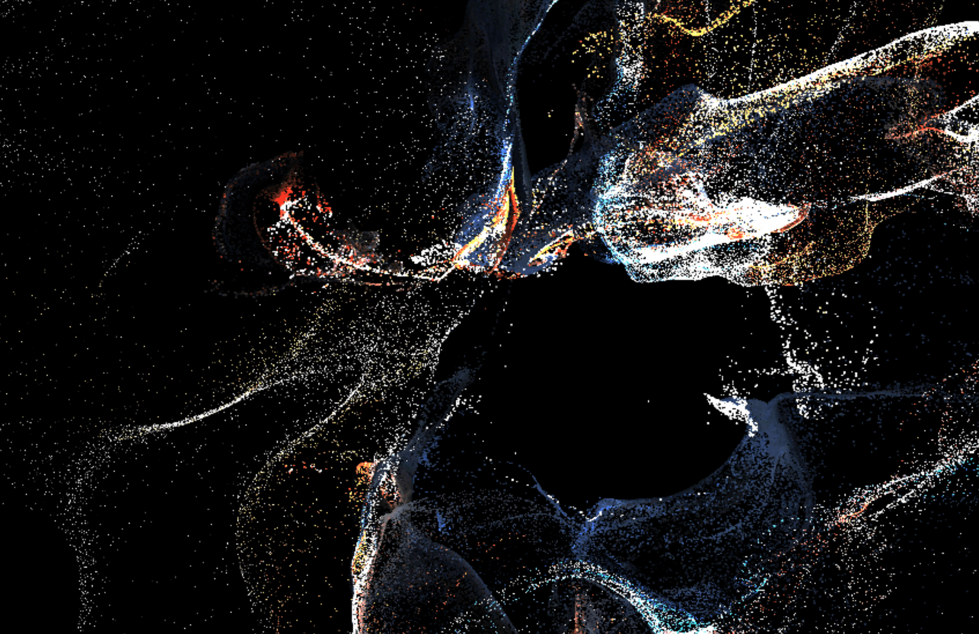 Functioning as a kind of digital synesthesia, the work replaces the x, y, and z coordinates of particles with brainwave frequencies. A visible human body slowly dissolves into abstract formations that shift with the visitor’s inner landscape. Through this, a neurological feedback loop emerges — a dialogue between the participant and their digital counterpart. Inspiration creates form, and form deepens inspiration.
